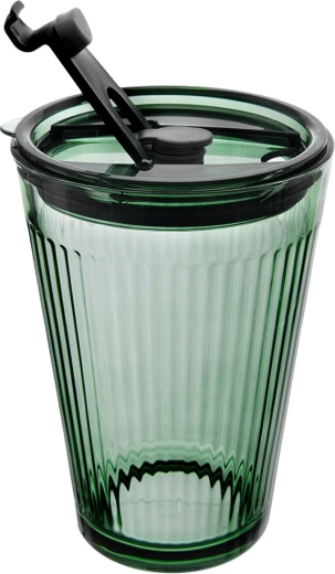 Profitez de votre café, thé ou limonade avec style. Le gobelet en verre VERDE, dans une élégante finition verte, offre une capacité totale de 450 ml (environ 400 ml avec le couvercle et la paille). Le verre rainuré garantit une tenue confortable et sûre, tandis que le couvercle étanche limite les déversements indésirables.