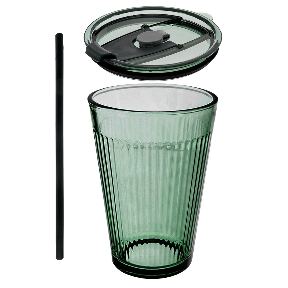 Gobelet en verre avec couvercle et paille VERDE 450 ml