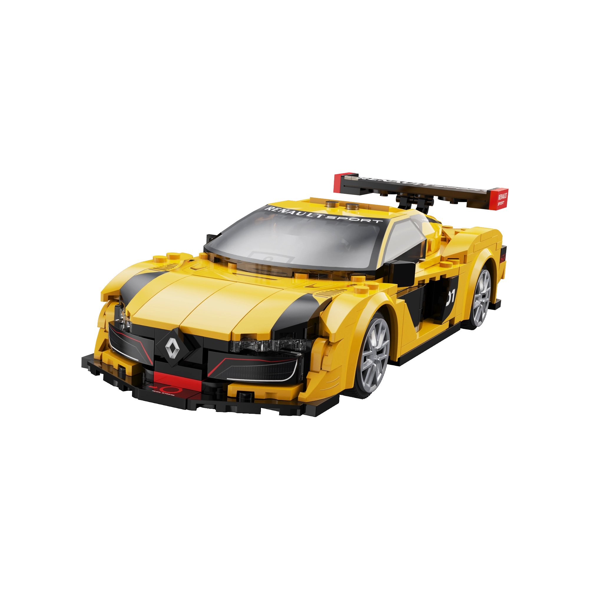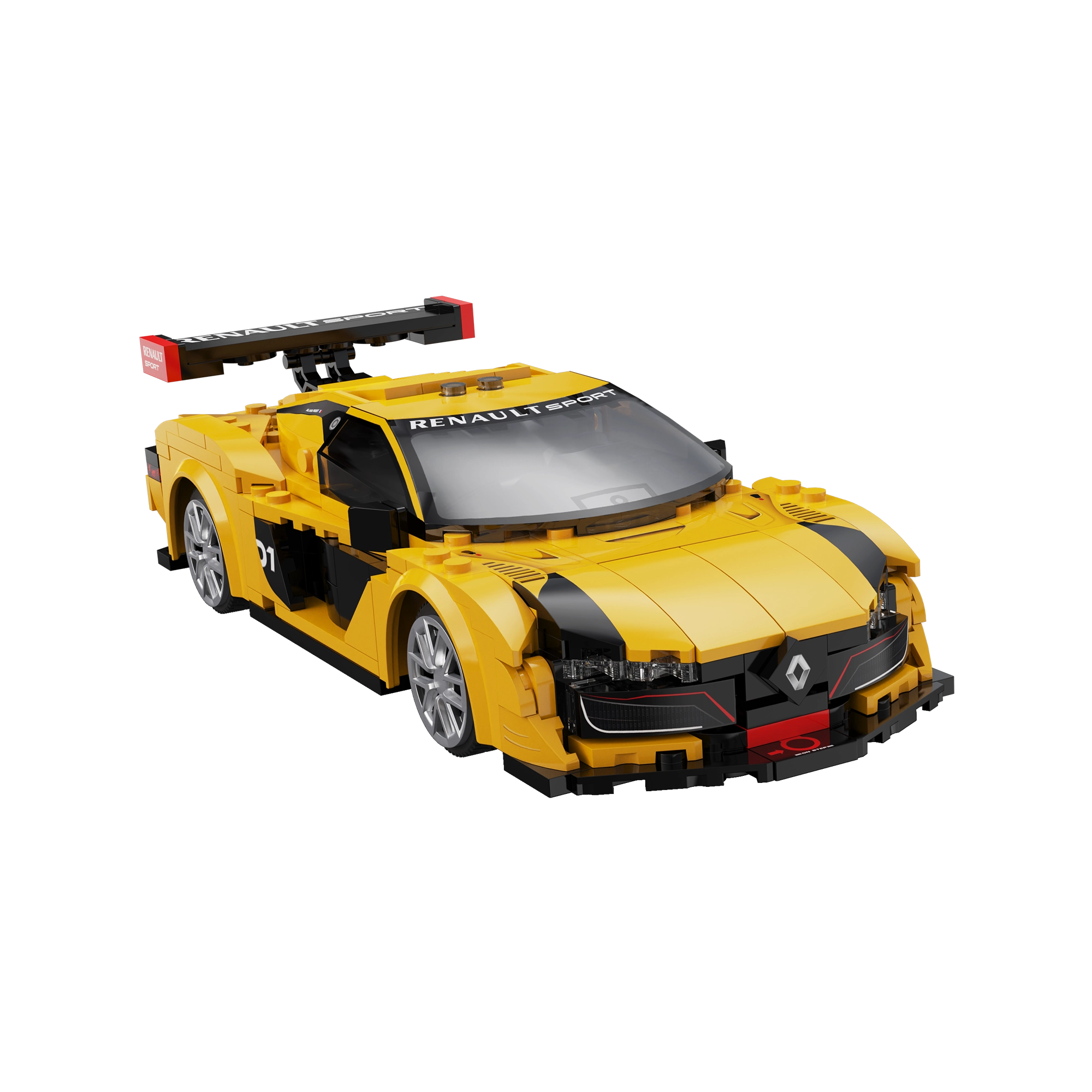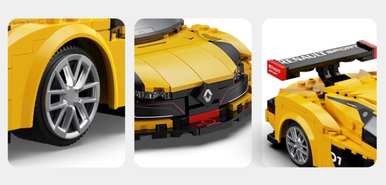 Carrosserie jaune‑noir, grand aileron arrière et splitter bas apportent le style authentique RENAULT SPORT – idéal pour jouer ou exposer.