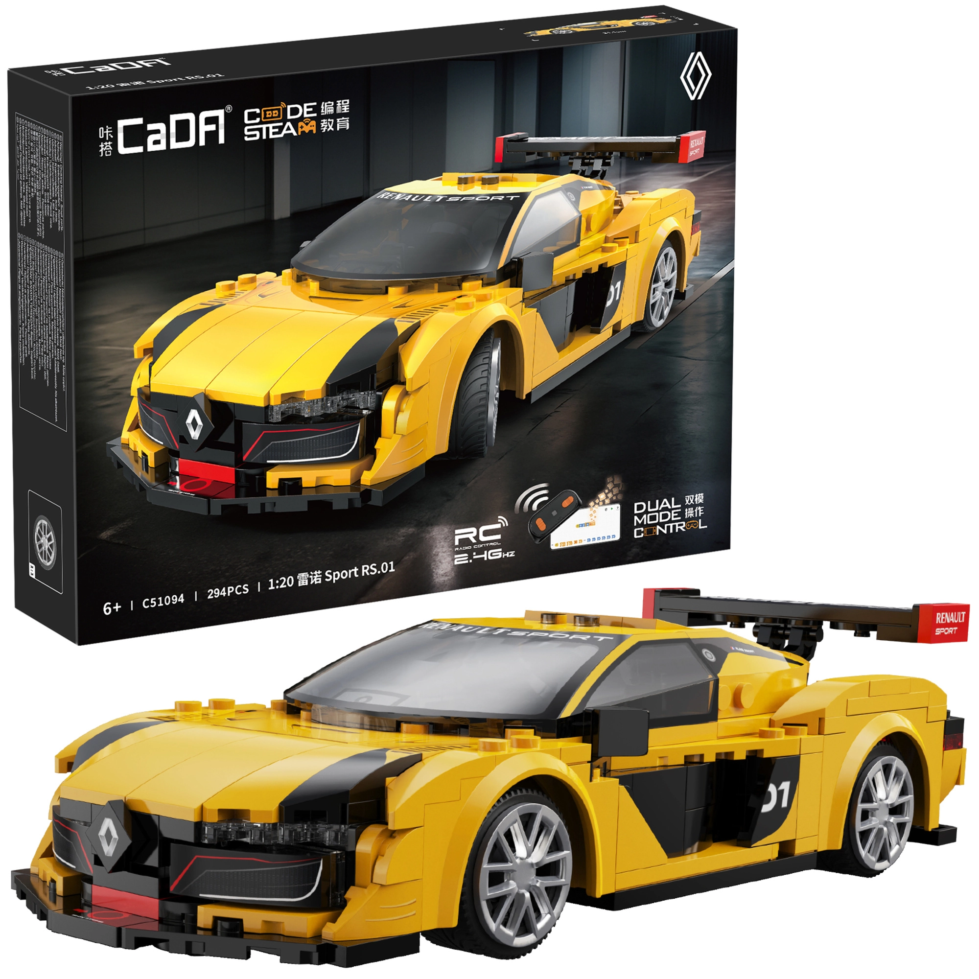 Vivez le plaisir de construire et de piloter avec le kit CaDA RENAULT SPORT RS.01. Conception soignée, formes réalistes et livrée sportive jaune‑noire assurent un superbe look sur l’étagère et un excellent divertissement au sol. Grâce au RC Dual Mode, vous pouvez piloter la voiture avec le contrôleur 2,4 GHz ou via l’application Bluetooth proposant plusieurs modes de conduite.
