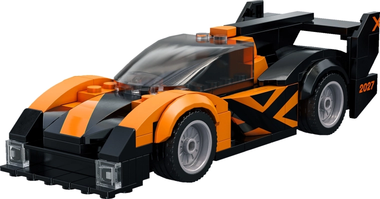 Coloris orange et noir, aileron arrière prononcé et cockpit transparent confèrent au modèle un look de course authentique, idéal pour jouer ou exposer.