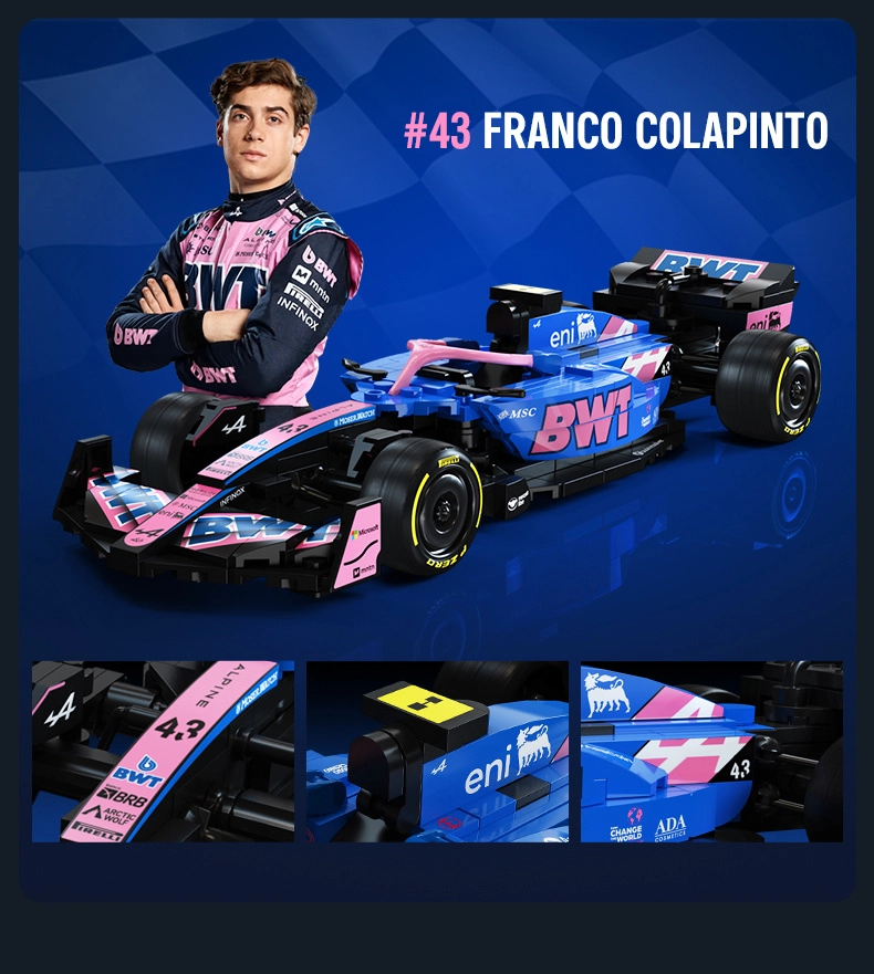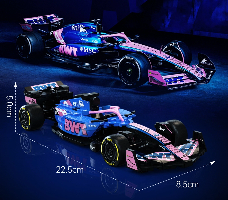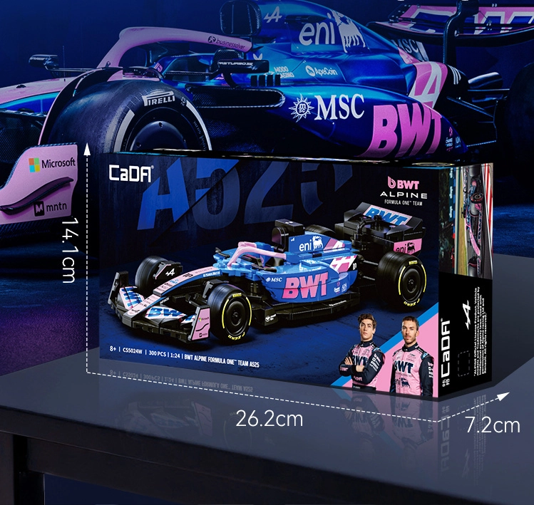 Ce kit de construction design CaDA reproduit fidèlement la silhouette agressive et les couleurs marquantes du monoplace BWT ALPINE F1 A525. Grâce à ses nombreux détails, à ses marquages sur les pièces et à sa conception soignée, il est idéal comme pièce d’exposition élégante pour vitrine et comme source d’inspiration pour le jeu créatif.