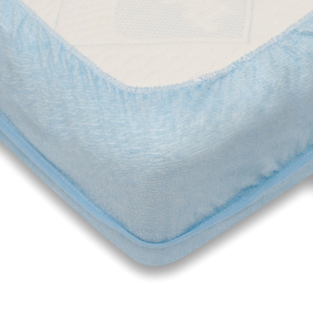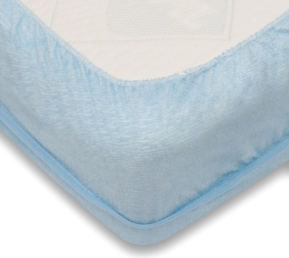 Le drap-housse éponge imperméable bleu clair est un excellent choix pour le confort et l’hygiène du lit de bébé. La surface en éponge de coton est agréable au toucher, tandis que la couche protectrice inférieure empêche efficacement la pénétration des liquides et protège le matelas contre les salissures.