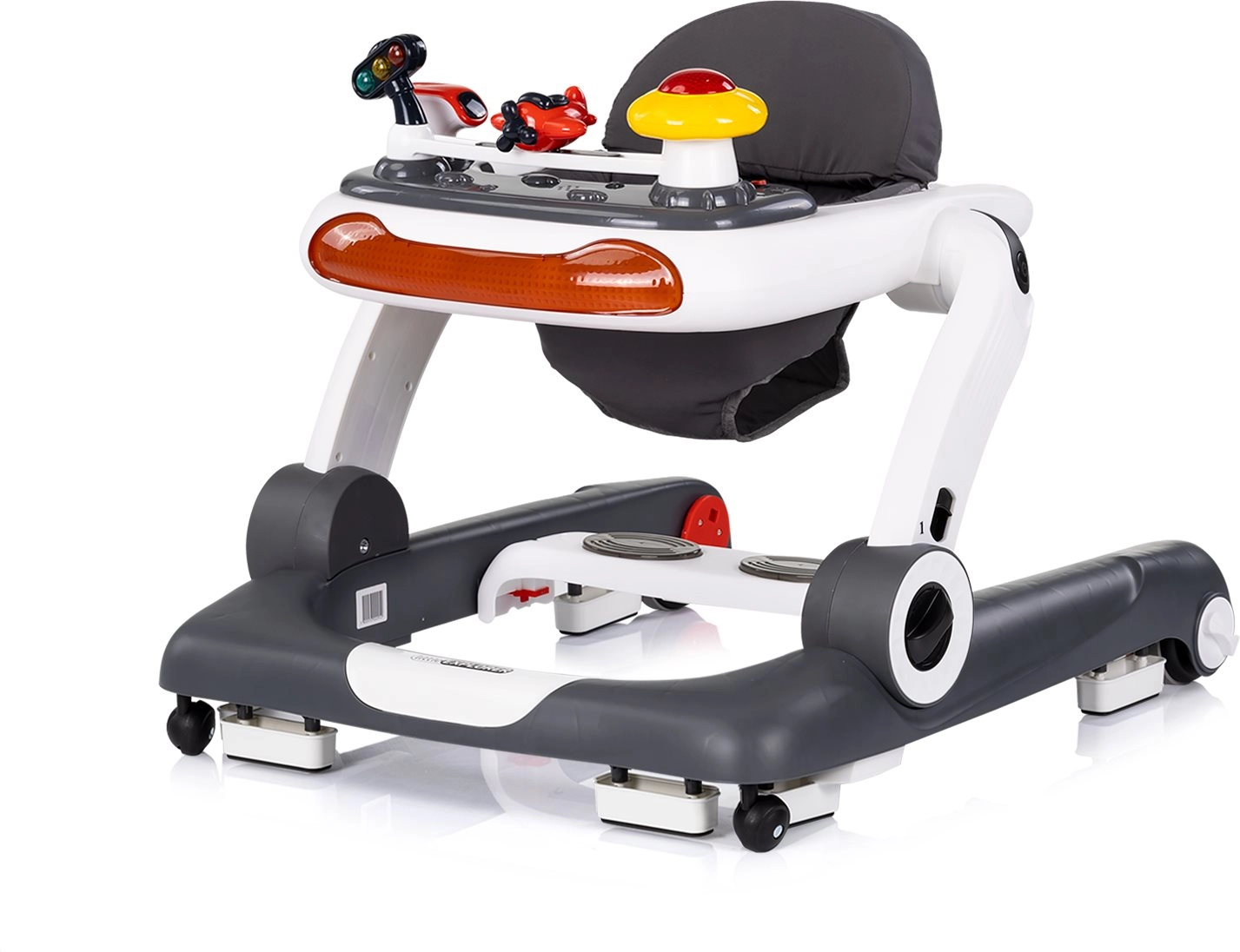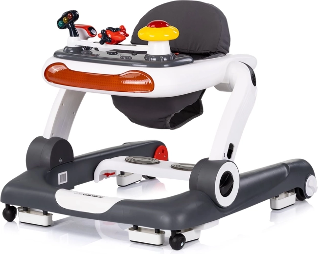 CHIPOLINO Little Explorer est un trotteur pratique et ludique qui évolue avec votre enfant. Grâce à sa conception 4 en 1, il propose un mode trotteur, un centre d’activités, un mode sauteur doux pour renforcer les muscles, ainsi qu’une fonction pousseur/porteur pour encourager la marche autonome. Le panneau interactif avec lumières, boutons musicaux et jouets mobiles stimule les sens et développe la motricité fine.