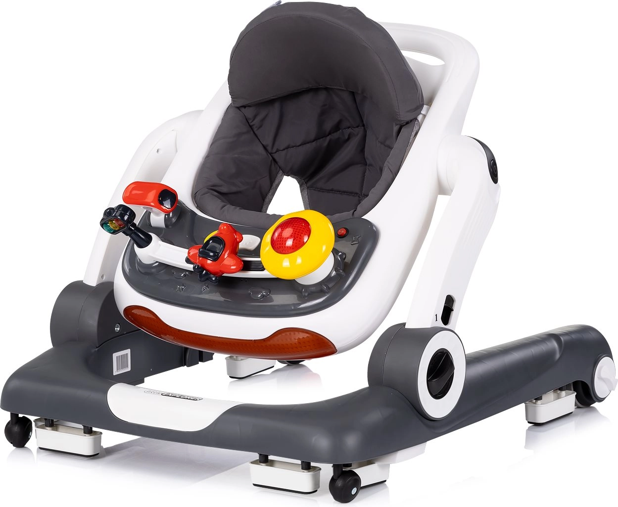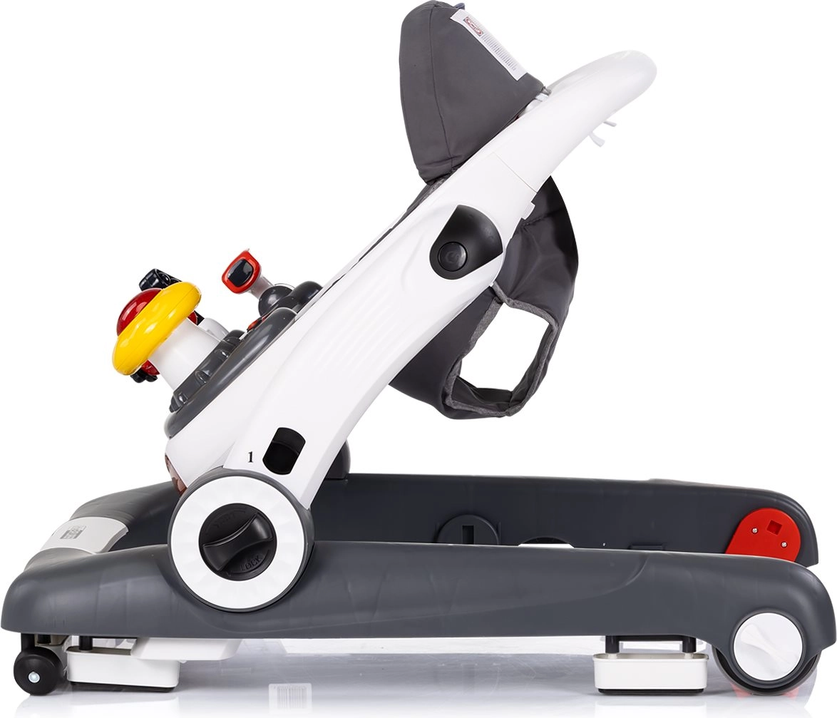 Découvrez la trottinette bébé 4 en 1 multifonction CHIPOLINO Little Explorer dans une élégante couleur grise. Elle accompagne les premiers pas, développe l’équilibre et la coordination et, grâce à son panneau de jeu interactif avec lumières, boutons et jouets, motive à bouger et à jouer. Hauteur réglable, patins antidérapants, butées et réglage de la vitesse des roues assurent une utilisation sûre et confortable au quotidien.