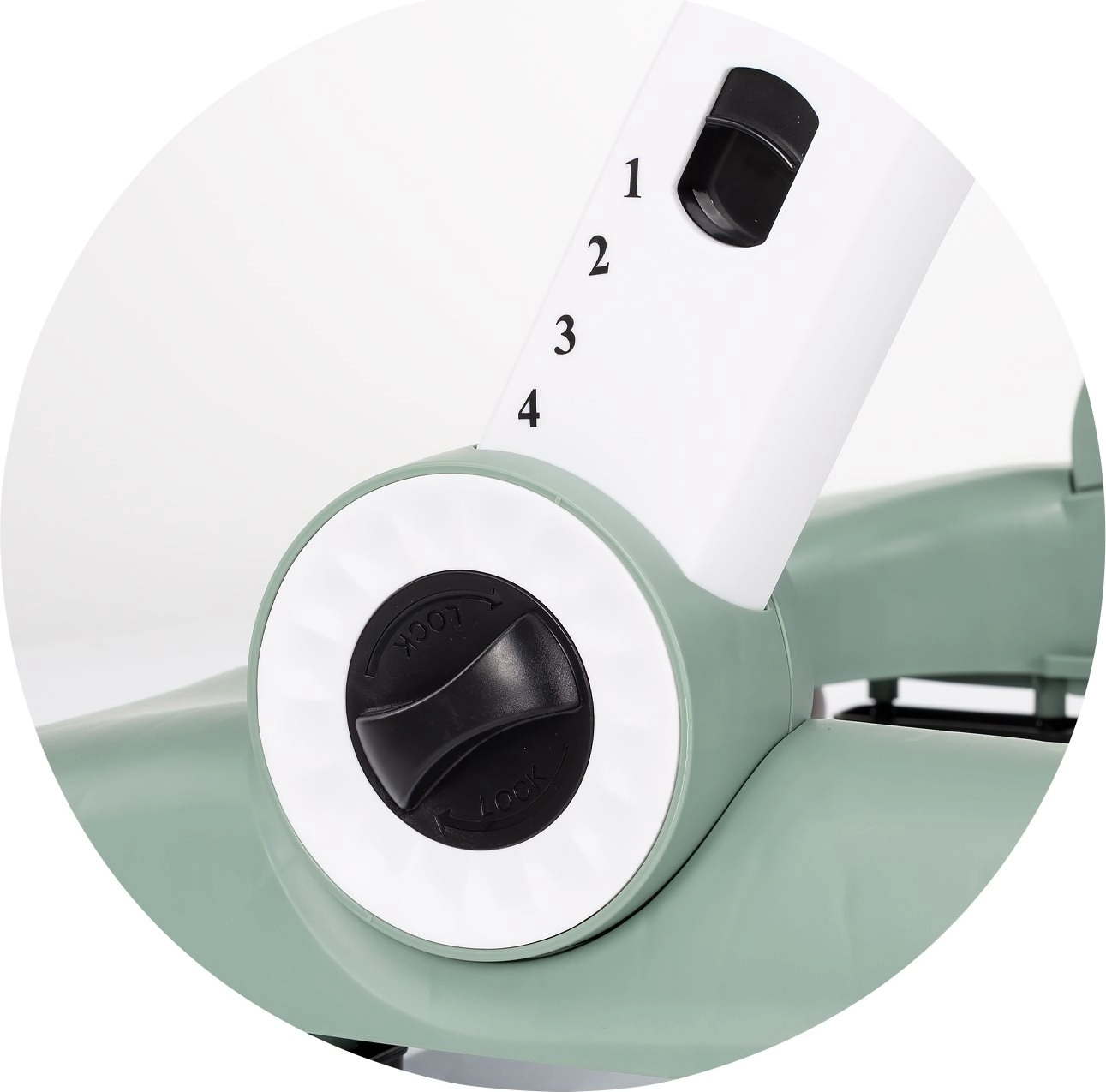 - Patins antidérapants, butées, roues verrouillables et réglables, base stable