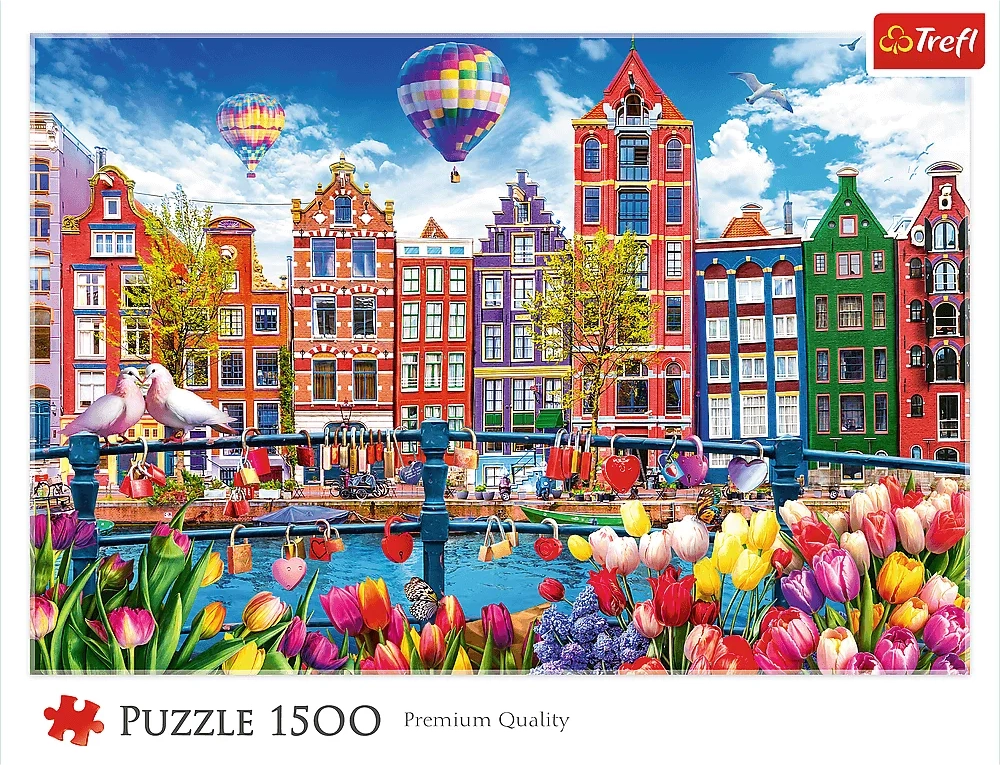 Découvrez le charme de la métropole néerlandaise en assemblant ce puzzle TREFL de haute qualité. Le motif Amsterdam coloré séduit par ses couleurs vives, ses détails fins et l’atmosphère agréable de la ville, qui en fait une décoration murale remarquable une fois terminé. Avec ses 1500 pièces, il garantit des heures de divertissement et exerce parfaitement la concentration.
