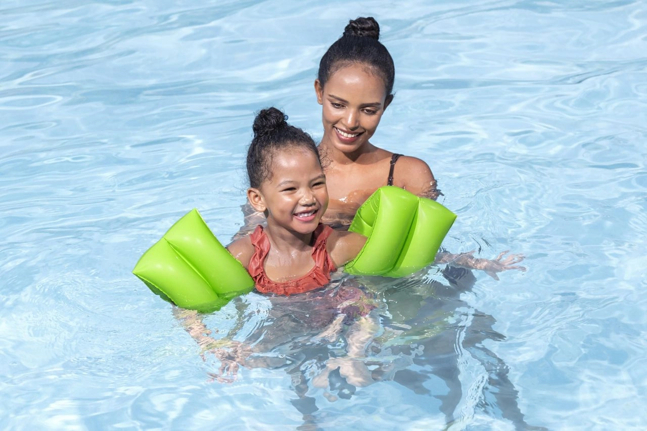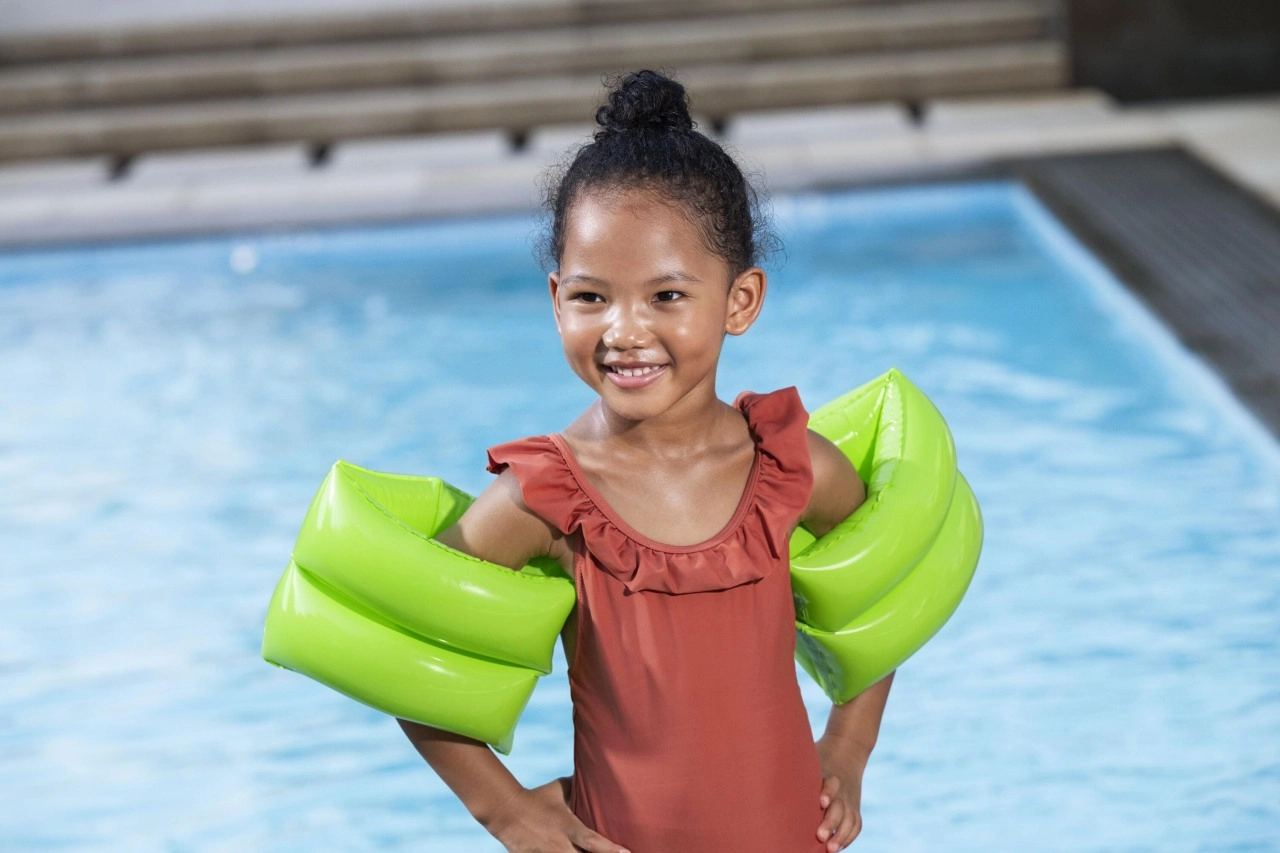 Des brassards gonflables pour enfants BESTWAY sûrs et confortables aident à gagner en assurance dans l’eau. Grâce à deux chambres à air, à des valves robustes et à une couleur verte vive, ils offrent une excellente flottabilité, une grande visibilité et une mise en place facile – idéals pour l’apprentissage de la nage à la piscine comme à la mer.