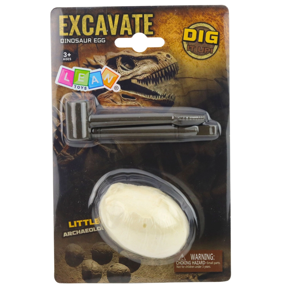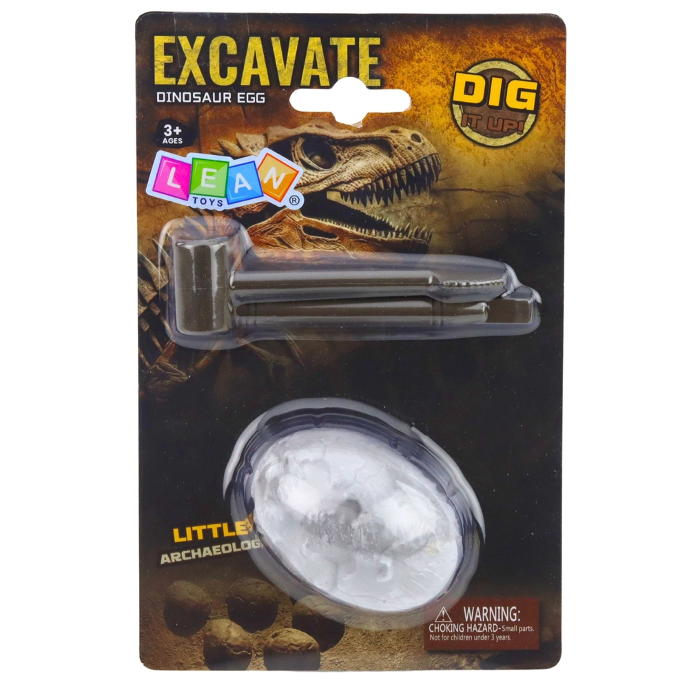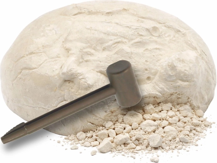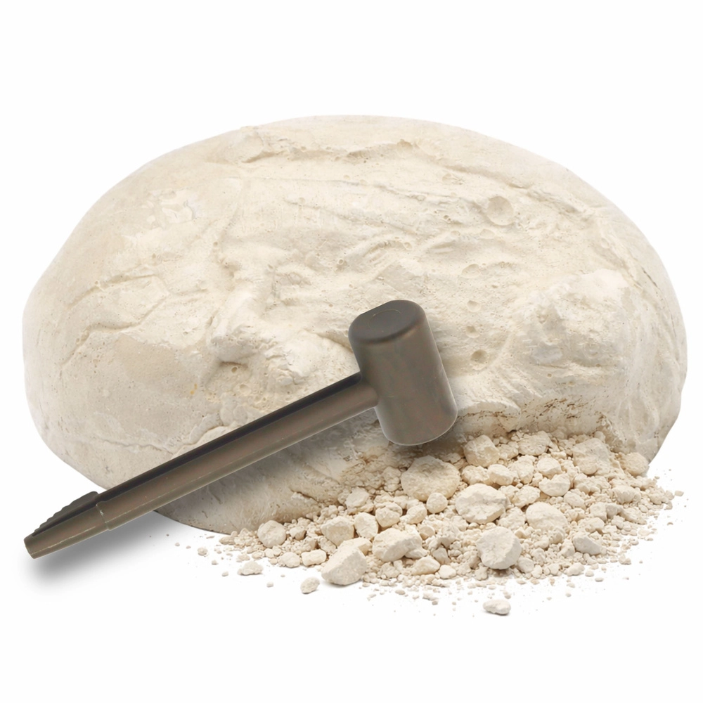 Ce set archéologique interactif permet aux enfants de se glisser dans la peau de petits paléontologues. Leur mission est de dévoiler progressivement la figurine de dinosaure dissimulée dans l’œuf en plâtre à l’aide du burin et du marteau fournis. Il suffit de tremper l’œuf quelques minutes, de laisser la matière ramollir puis d’enlever délicatement les couches de « roche ».