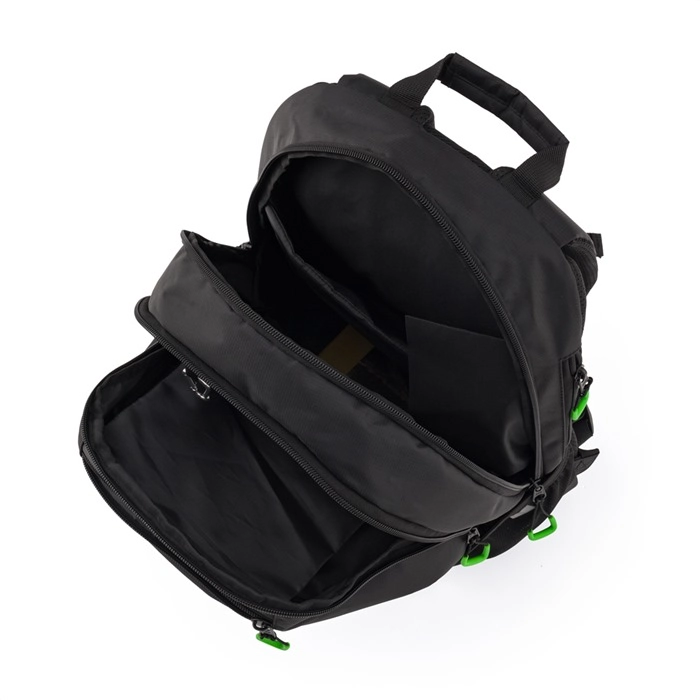 Deux compartiments principaux, une poche frontale, un organiseur interne et une poche renforcée pour ordinateur gardent tout ordonné et en sécurité.