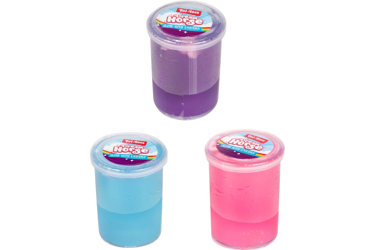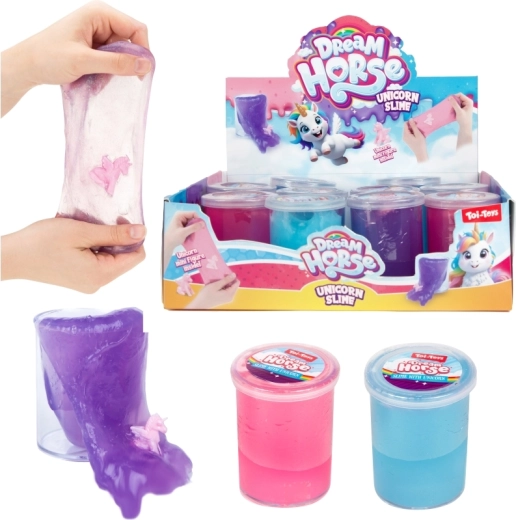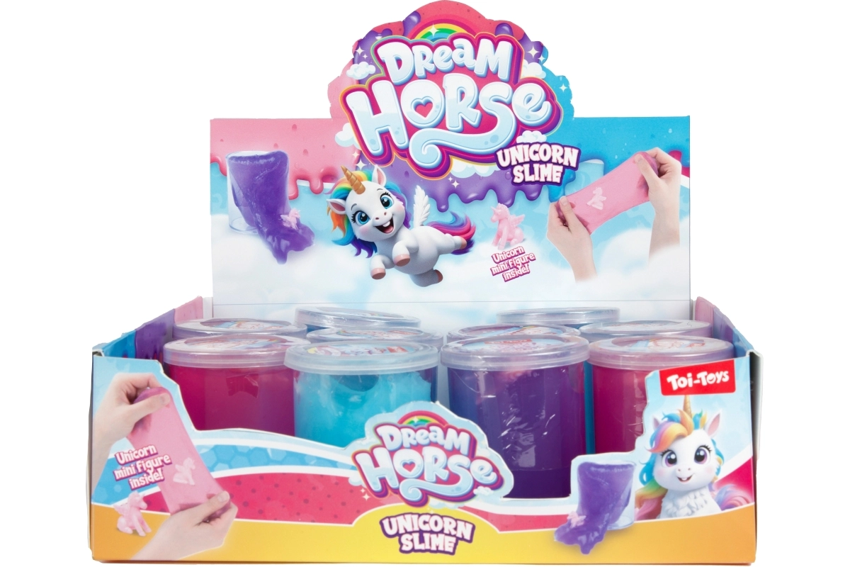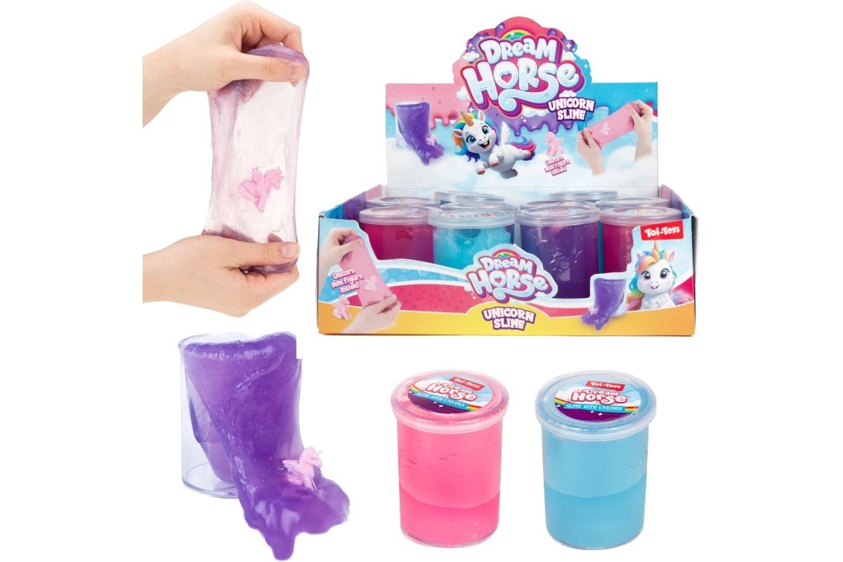 Le slime avec licorne Toi-Toys offre aux enfants des heures de jeu créatif. À l’intérieur du slime transparent et scintillant se cache une petite figurine de licorne qui n’attend qu’à être découverte. Grâce à sa consistance agréable et élastique, le slime est idéal pour presser, étirer et pétrir – il aide à relâcher les tensions et favorise la stimulation sensorielle.