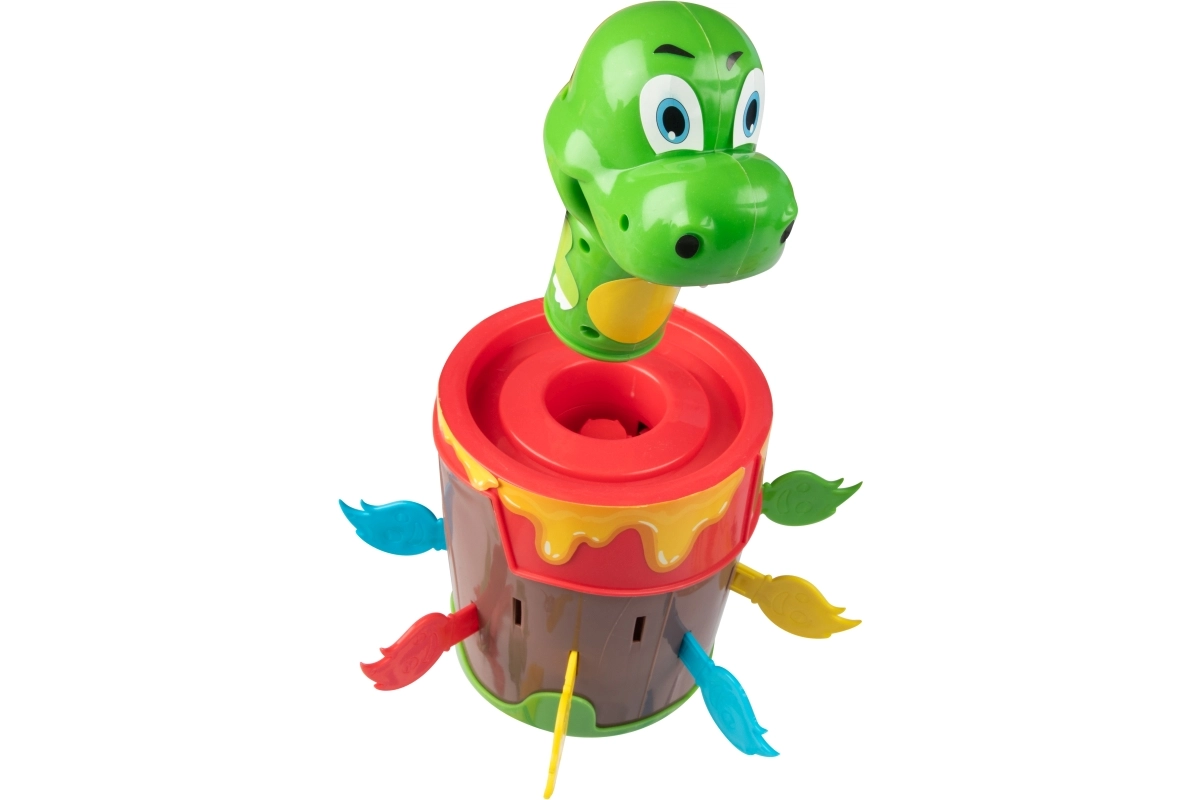 Insérez les bâtonnets de feu dans le tonneau et attendez que le dinosaure bondisse. Un mécanisme simple, sans piles, assure un jeu fiable et amusant pour toute la famille.