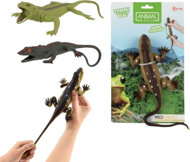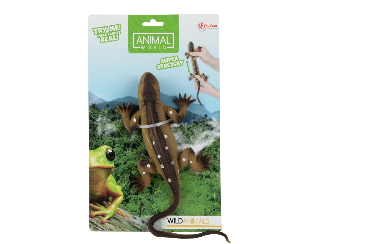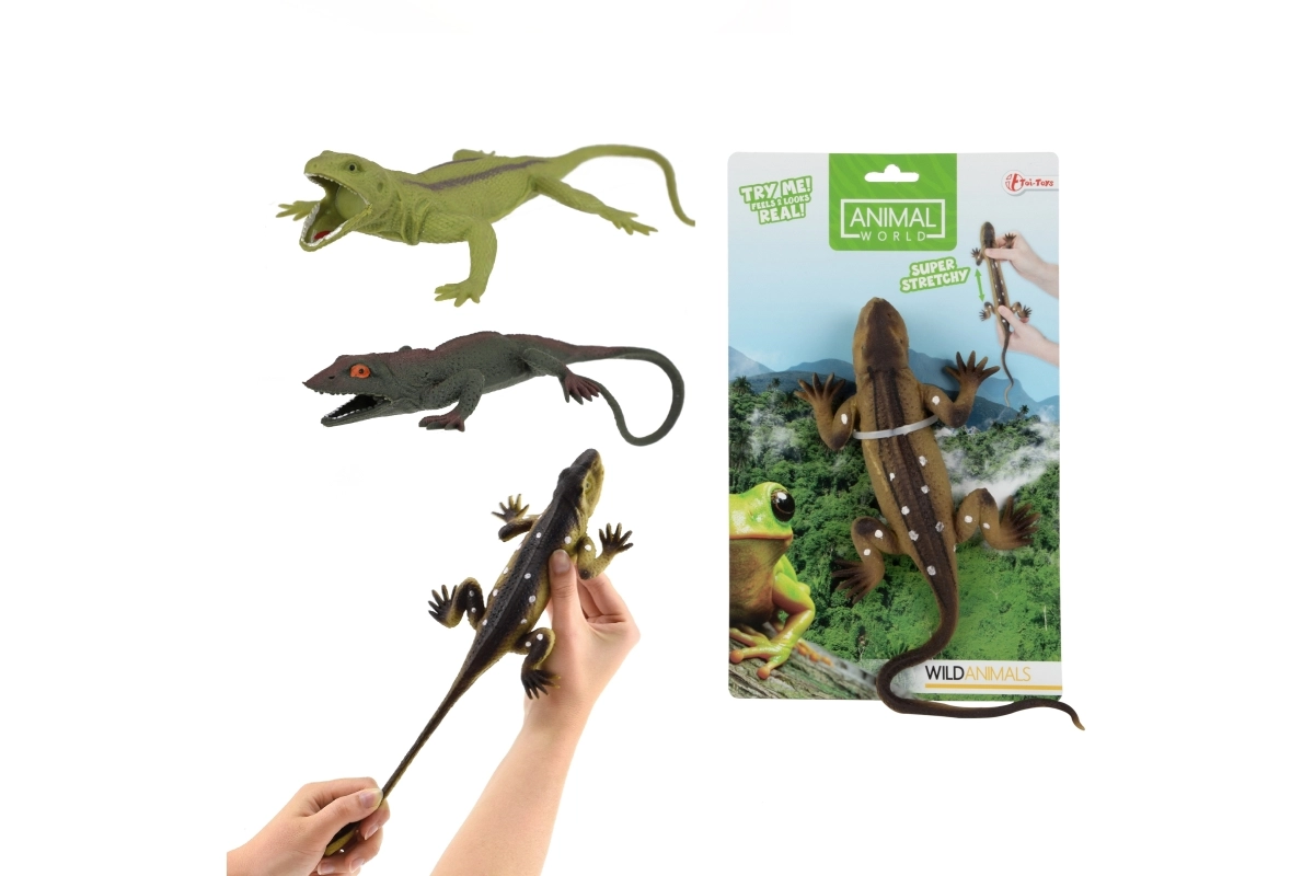 Le jouet est en plastique de qualité avec des éléments élastiques, facile à entretenir et idéal pour la chambre d’enfant, la maternelle ou les trajets. Il est emballé sur une carte pour un cadeau facile à offrir. Dimensions du lézard env. 24 × 12 × 3 cm, parfait pour les petites mains et un jeu en toute sécurité.