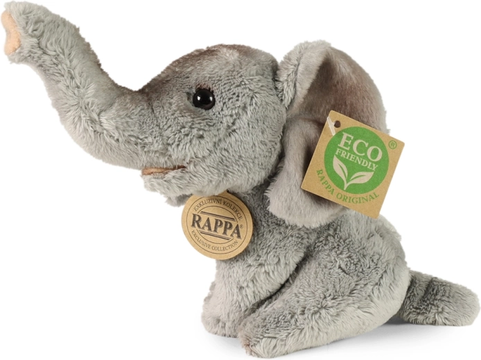 Adorable éléphant en peluche de 15 cm de la collection exclusive RAPPA, parfait pour les enfants comme pour les collectionneurs. Fabriqué avec des matériaux de qualité, un travail artisanal pour un rendu réaliste, et une fibre éco en bouteilles PET recyclées adaptée même aux nouveaux-nés.