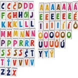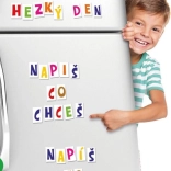 Lettres magnétiques colorées adaptées pour le réfrigérateur, la machine à laver ou toute autre surface métallique. Le set comprend 100 lettres de l'alphabet tchèque, permettant aux enfants de créer des mots et des phrases, ainsi que des messages pour les membres du foyer.