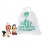 Les pièces d'échecs sont illustrées comme différents animaux, rendant le jeu intéressant et attractif pour les jeunes enfants.