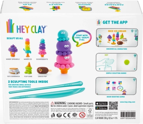Le coffret Hey Clay Crèmes glacées apporte une touche de créativité rafraîchissante aux petits comme aux grands créateurs. Grâce à une pâte légère, colorée et autodurcissante, les enfants modèlent aisément des personnages en forme de glace originaux, qui conservent leur forme après séchage et peuvent servir de décoration ou de cadeau.