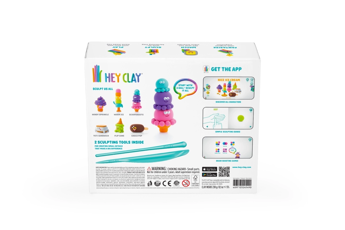 Découvrez la création ludique avec le coffret HEY CLAY Crèmes glacées, où les enfants réalisent pas à pas de joyeux personnages en forme de glace. Le coffret contient 15 pots de pâte légère autodurcissante, 2 outils de modelage et un accès à l’application mobile avec des guides simples. Idéal pour développer la créativité, l’imagination et la motricité fine – une activité propre, amusante et sûre pour les enfants dès 3 ans.