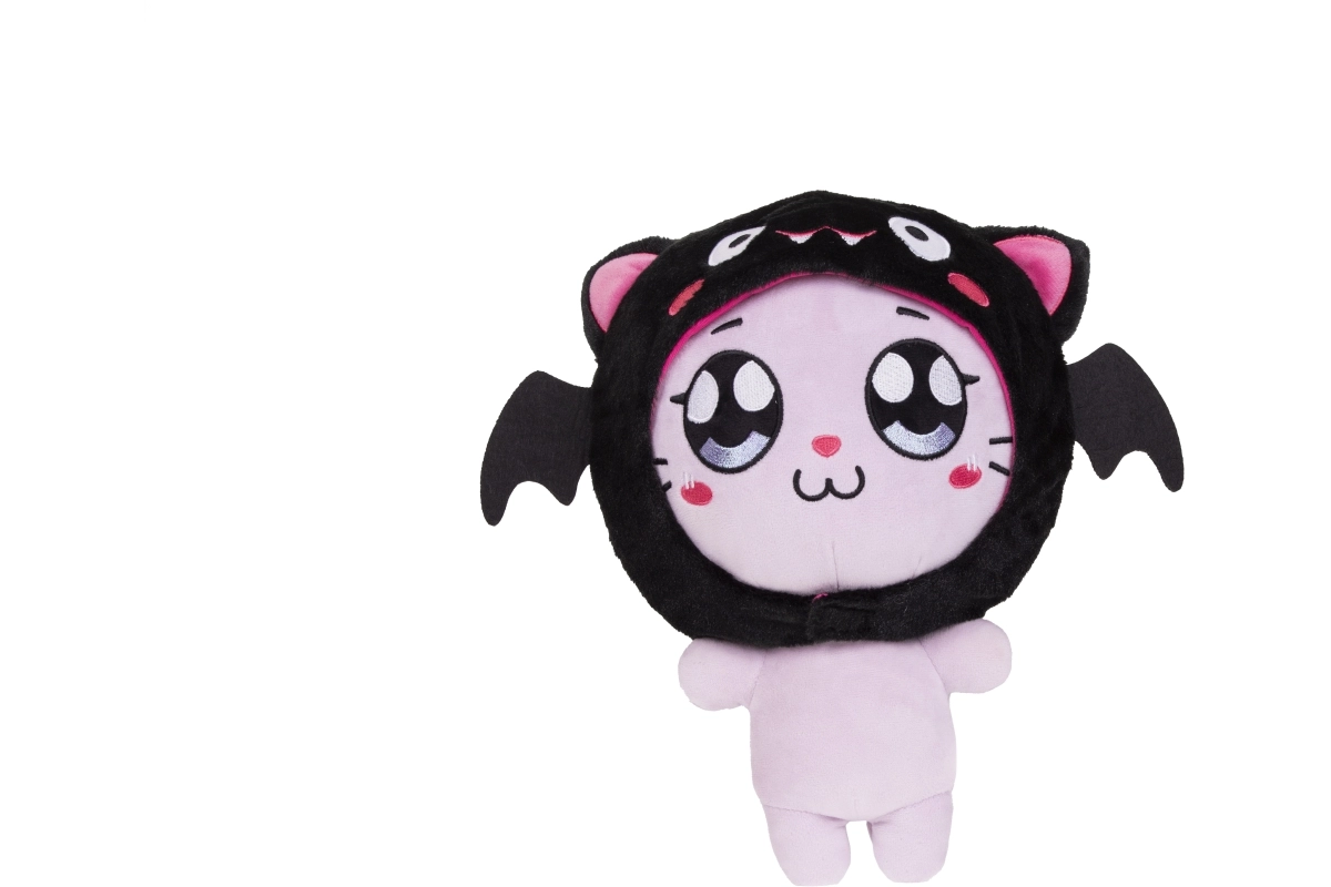 Adorable chaton en peluche avec une capuche de chauve-souris originale, idéal pour les enfants dès 10 mois. Confectionné en peluche extra douce, avec des détails brodés sécurisés et une capuche/sweat amovible qui favorise le développement de la motricité fine. Parfait comme doudou et comme décoration pour la chambre d’enfant.