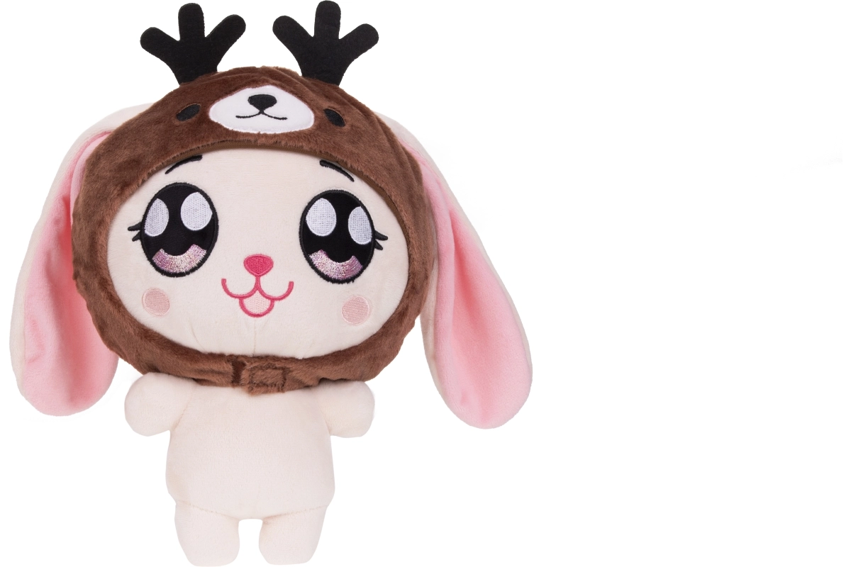 Adorable lapin en peluche avec sweat à capuche amovible et petits bois de renne, il fera fondre le cœur des enfants et des parents. Confectionné en matière premium, exceptionnellement douce, avec yeux brodés sécurisés, il est idéal pour dormir comme pour jouer. Grâce à sa capuche/sweat amovible, il stimule la motricité fine et l’imagination des enfants. Convient dès 10 mois.