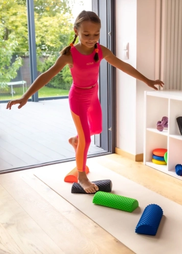 La surface texturée à picots offre un retour sensoriel lors des exercices d’équilibre, adaptée aux enfants comme aux adultes pour l’entraînement à la maison.