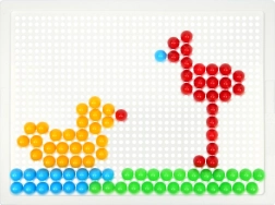 Chevilles de 10 mm de diamètre aux couleurs éclatantes, qui tiennent parfaitement dans une plaque en plastique robuste de 21 × 16 cm pour une création confortable.