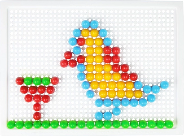 Insérer les chevilles dans la grille entraîne la préhension, la coordination œil–main et la patience. Une activité idéale pour les enfants d’âge préscolaire.