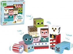 11 cubes en bois avec éléments sonores