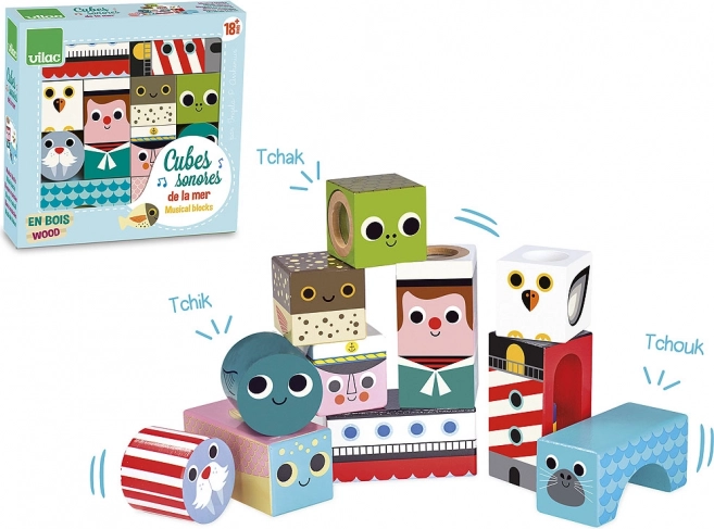 Ces cubes sensoriels en bois aux motifs marins offrent aux enfants la joie de découvrir formes, couleurs et sons. En secouant et en empilant, les enfants exercent la préhension, la coordination et la concentration, tandis que les différents éléments sonores renforcent leur perception auditive. Les illustrations d’Ingela P. Arrhenius apportent au set une touche rétro unique et un caractère ludique.