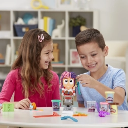 Avec ce set de coiffure Play-Doh, les coiffures délirantes prennent forme en un rien de temps. Asseyez le personnage dans le fauteuil, appuyez, et une chevelure colorée pousse de sa tête : vous pouvez ensuite couper, peigner et décorer. La pâte à modeler multicolore et les accessoires amusants transforment chaque coupe en une nouvelle histoire pleine de fantaisie.