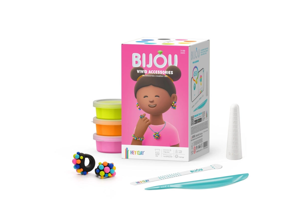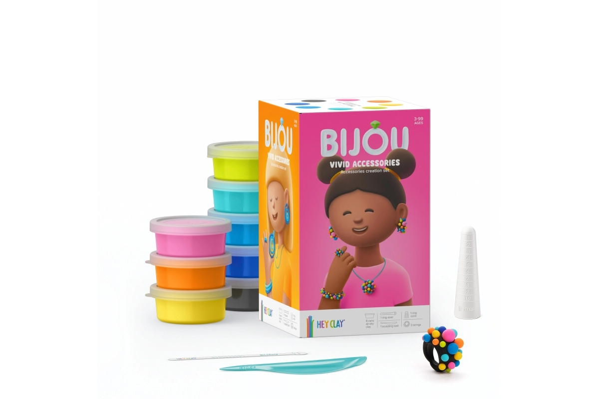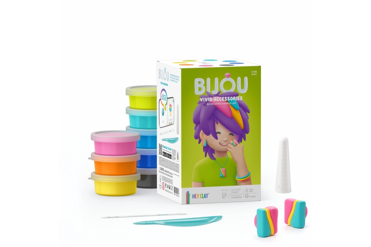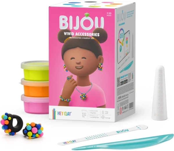 Le coffret HEY CLAY Bijou Vivid est idéal pour les petits créateurs qui aiment les couleurs et les accessoires originaux. Grâce à la pâte souple, les enfants peuvent facilement façonner des perles, des pendentifs et d’autres décorations qui, après séchage à l’air, conservent joliment leur forme.