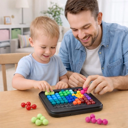 Un jeu logique amusant avec des billes colorées pour enfants et adultes qui développe la pensée logique, la représentation spatiale et la concentration. L’objectif est d’assembler des pièces 3D de façon à remplir entièrement la surface sans laisser d’espaces. Son format compact est idéal à la maison comme en voyage.