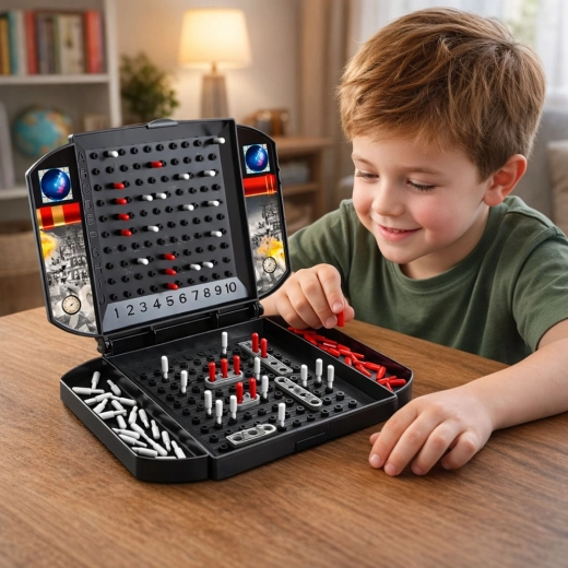 Constituez votre flotte, recherchez les navires adverses grâce à des coordonnées tactiques et coulez-les un à un. Chaque touche et chaque minute de tension renforcent la réflexion stratégique et l’anticipation des coups de l’adversaire. Grâce à la construction refermable, tous les composants se rangent directement dans le plateau – idéal pour les soirées en famille comme pour des duels rapides entre amis.