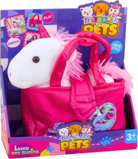 Elle est accompagnée d’un sac rose brillant et stylé, doté de anses confortables et d’une fermeture à scratch, orné de petits cœurs scintillants. Les enfants peuvent y transporter facilement la licorne et d’autres petits trésors.