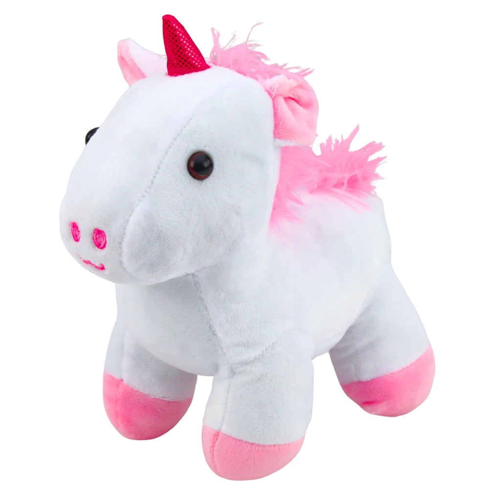 La peluche moelleuse, agréable au toucher, offre du confort aux enfants pendant le jeu comme au repos. La licorne blanche aux détails roses est une compagne idéale pour la nuit.