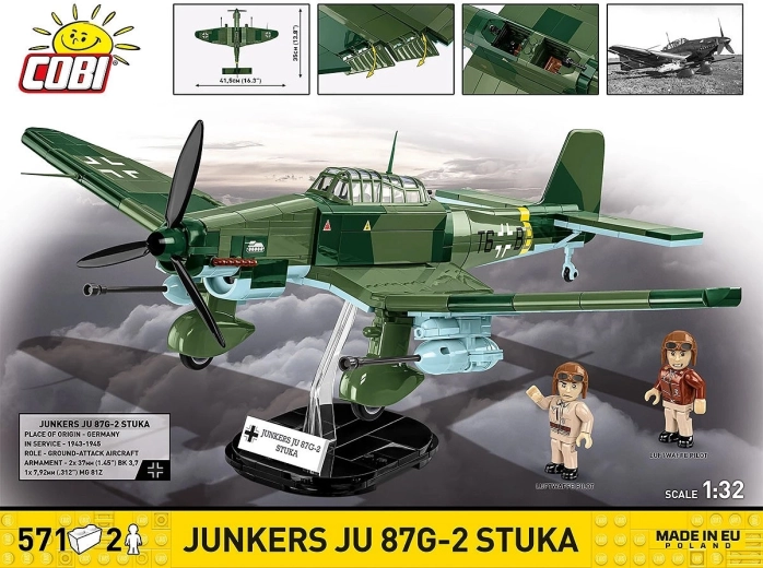 Comprend un socle de présentation avec plaque « JUNKERS JU 87G-2 STUKA » et deux figurines de pilotes finement imprimées pour un rendu authentique.
