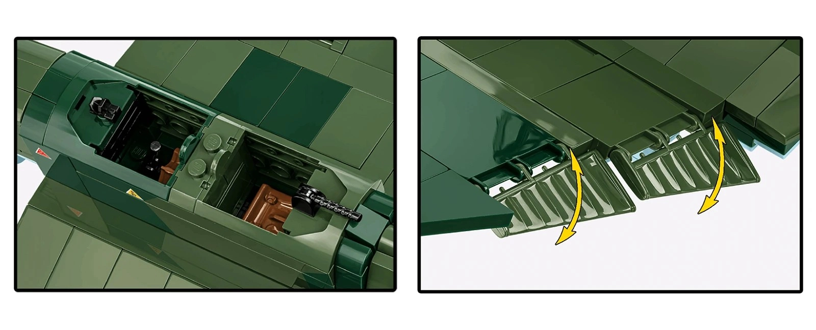 Hélice rotative, gouvernes fonctionnelles, roues en caoutchouc et cockpit ouvrant permettant d’installer les figurines et de donner vie aux scènes de vol et d’atterrissage.