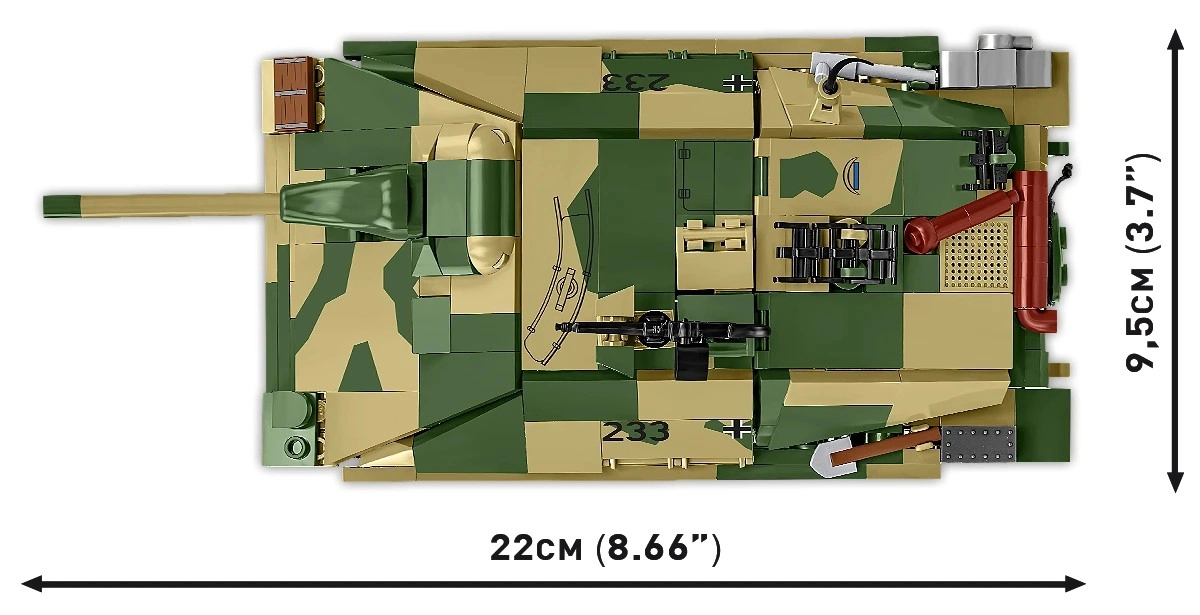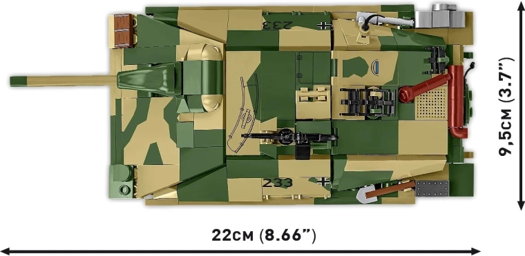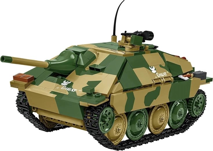 Le modèle Jagdpanzer 38(t) « Chwat », également connu sous le nom de « Hetzer », reproduit fidèlement un chasseur de chars capturé devenu symbole d’ingéniosité et de courage. Grâce à l’échelle 1:28, les proportions, les détails de surface et la silhouette précise sont mis en valeur. Une section de blindage amovible révèle un intérieur réaliste — poste d’équipage et compartiment moteur — et les chenilles en caoutchouc mobiles assurent un mouvement fluide lors du jeu.