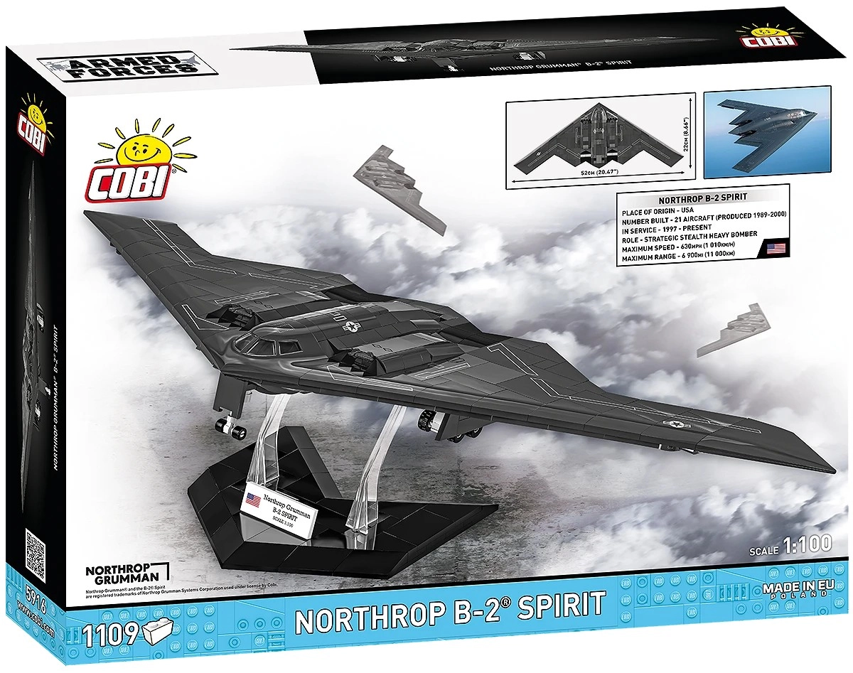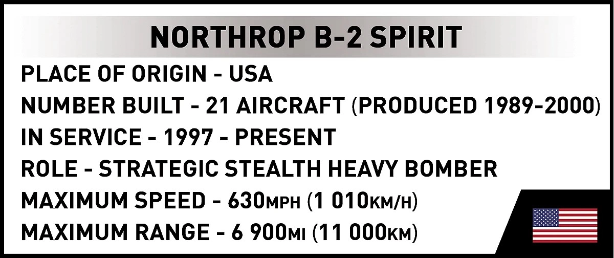 Créez votre propre légende de l’aviation : le NORTHROP B-2 SPIRIT de COBI est un kit de construction précis avec une excellente précision d’assemblage, reproduisant fidèlement l’iconique aile volante et ses surfaces furtives planes. Grâce à l’échelle 1:100 et à des pièces spécialement conçues, vous obtiendrez un modèle d’exposition spectaculaire aux détails saisissants.