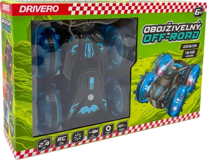 Le tout-terrain RC amphibie DRIVERO est un choix idéal pour s’amuser dans n’importe quel environnement – flaques, piscine ou terrain plus exigeant au jardin. Une commande intuitive et des matériaux résistants garantissent une conduite sereine, tandis que les roues transparentes avec éclairage LED créent un show lumineux impressionnant au crépuscule.