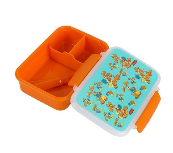 Cette boîte à collation stylée avec motif de petit chien offre suffisamment d’espace pour des sandwiches, des fruits et de petites gourmandises. Ses dimensions compactes lui permettent de se glisser facilement dans un cartable ou un sac à main, et les couverts intégrés assurent un repas confortable où que vous soyez.