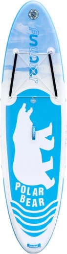 Découvrez le FunWater POLAR BEAR 10'6, stable et ludique, qui grâce à sa largeur et à sa forme offre de l’assurance lors des premières sorties et suffisamment de contrôle pour les longues balades. Le revêtement EVA antidérapant augmente l’adhérence et le confort, que vous pagayiez debout, à genoux ou que vous pratiquiez le yoga. Les sandows cargo à l’avant retiennent en toute sécurité une veste ou un petit bagage.