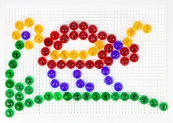 Les chevilles translucides et colorées apportent de l’éclat à chaque motif et motivent les enfants à essayer de nouvelles combinaisons de formes et de couleurs.