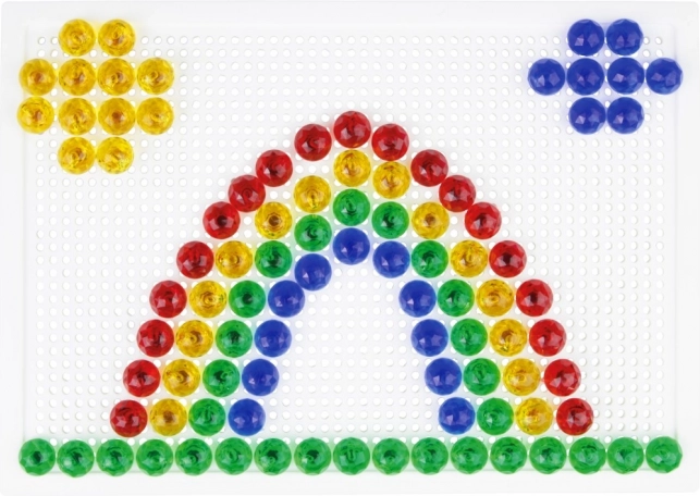 Les chevilles de 10 mm entraînent la prise en main, la coordination œil-main et stimulent l’imagination pour créer ses propres motifs sans être limité par des modèles.