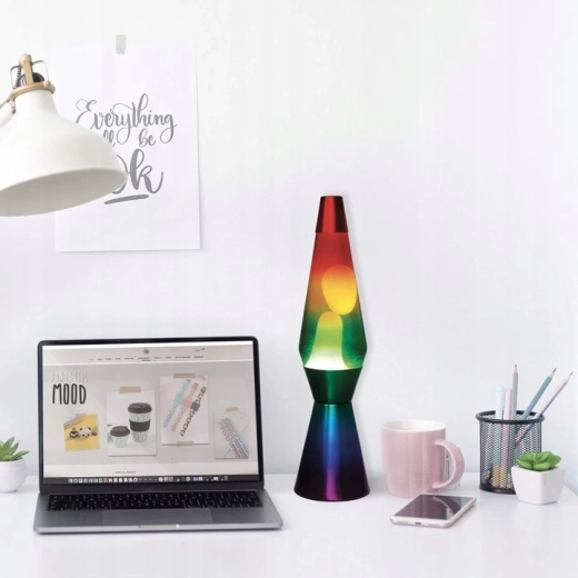 Découvrez le charme de la lampe à lave classique dans une version arc-en-ciel moderne. La cire fluide sous une lumière chaude crée un mouvement apaisant, idéal pour se détendre après une journée chargée, ainsi qu’un accessoire original pour le salon, la chambre ou le bureau. Grâce à sa hauteur de 40 cm, elle se démarque comme une décoration attrayante sans prendre trop de place.