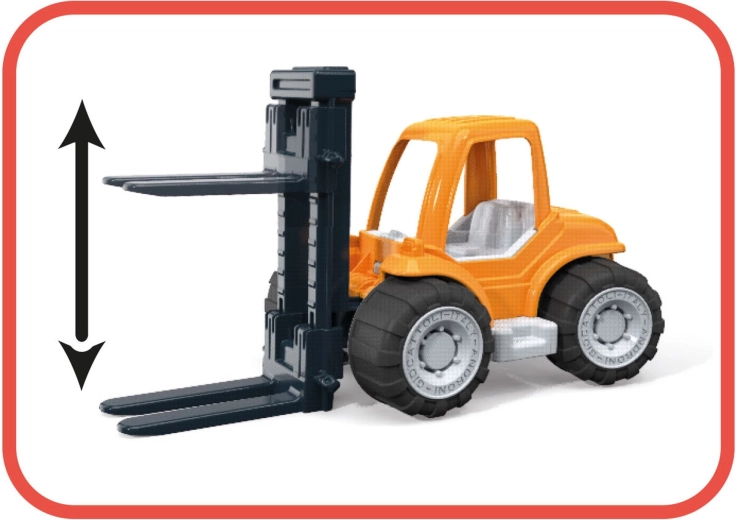 Les fourches mobiles permettent aux enfants de soulever et de transporter de petits objets ainsi que les blocs fournis, favorisant ainsi la coordination et la motricité fine.