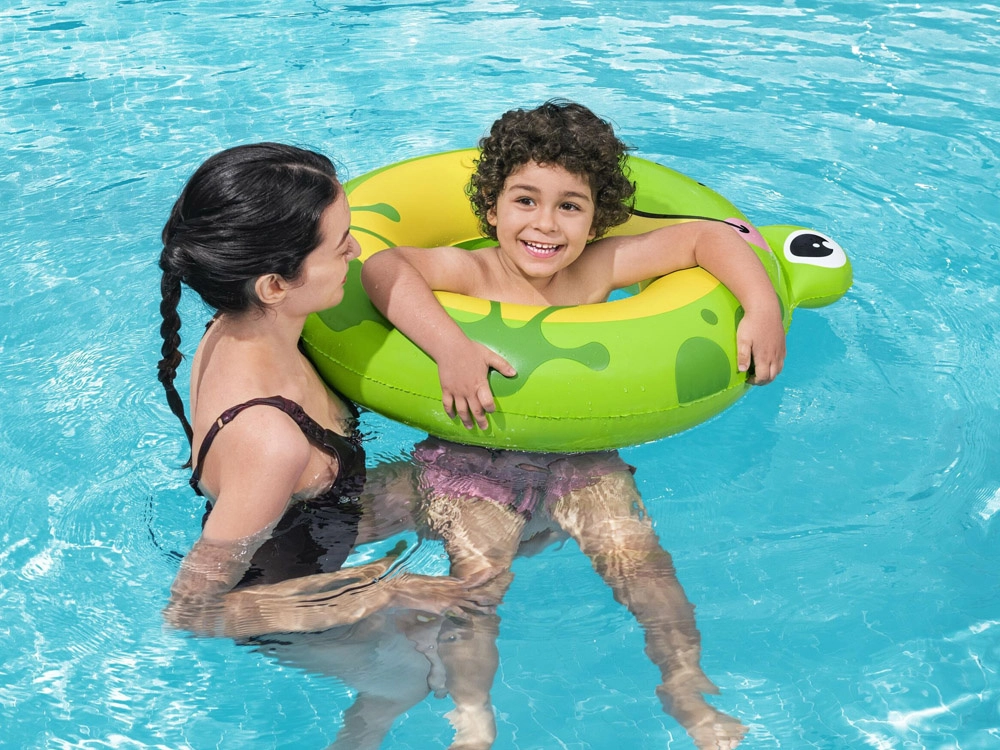 La frimousse joyeuse de la grenouille, ses yeux et ses détails à pois motivent les enfants à jouer dans l’eau et améliorent la visibilité à la surface.