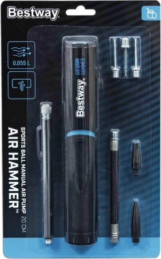 La pompe manuelle BESTWAY Air Hammer combine usage universel et simplicité d’utilisation. Idéale à la maison, pour l’entraînement et en vacances. Avec une longueur compacte de 20 cm, elle se glisse dans un sac à dos ou de sport et, grâce à son espace de rangement pratique pour l’aiguille et les adaptateurs, vous avez toujours tout sous la main.