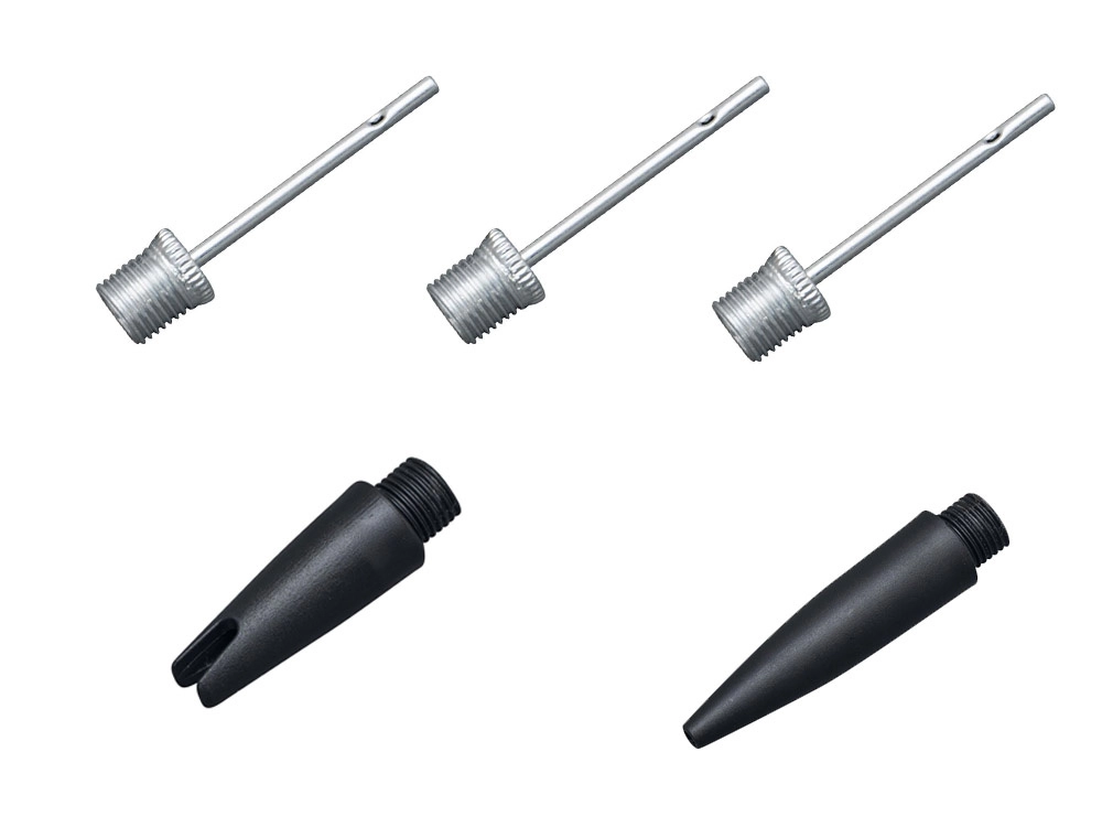 Trois aiguilles pour ballons et deux adaptateurs pour différentes valves couvrent la plupart des besoins sportifs et de loisirs.