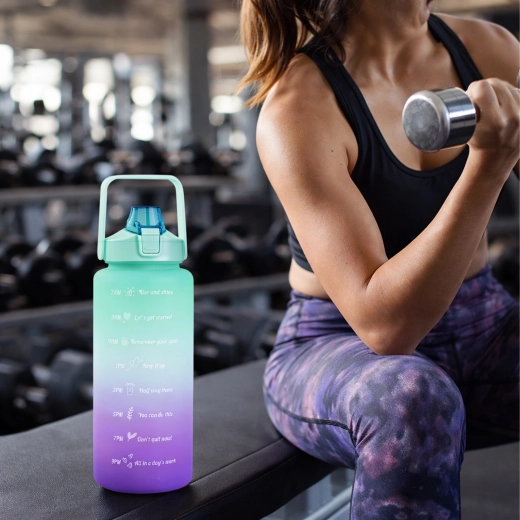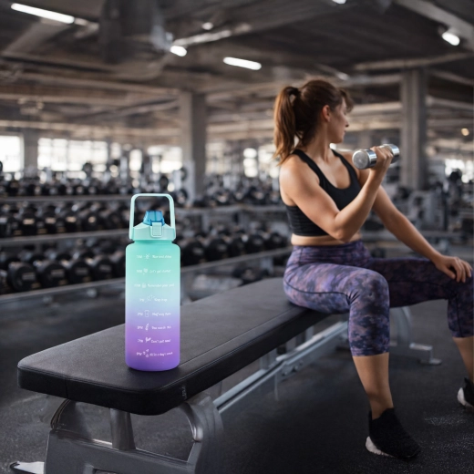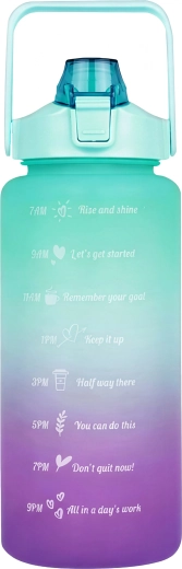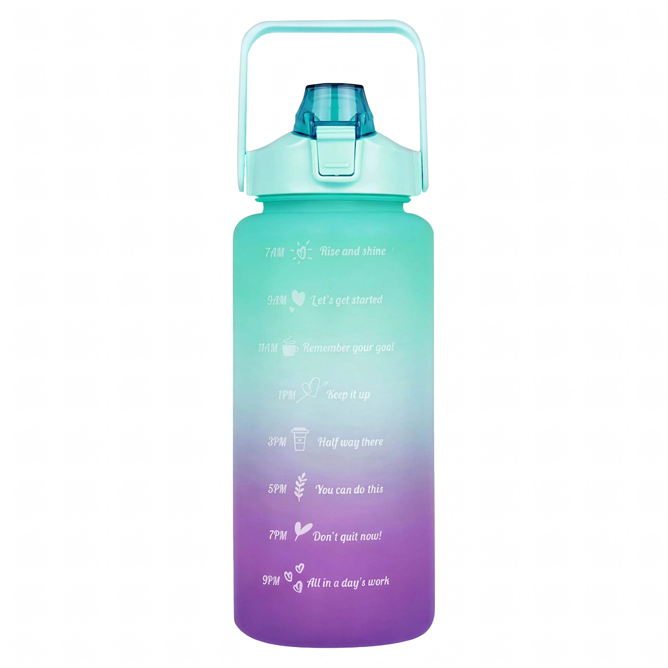 Bouteille d’eau motivationnelle 2 L avec paille et poignée, avec repères horaires